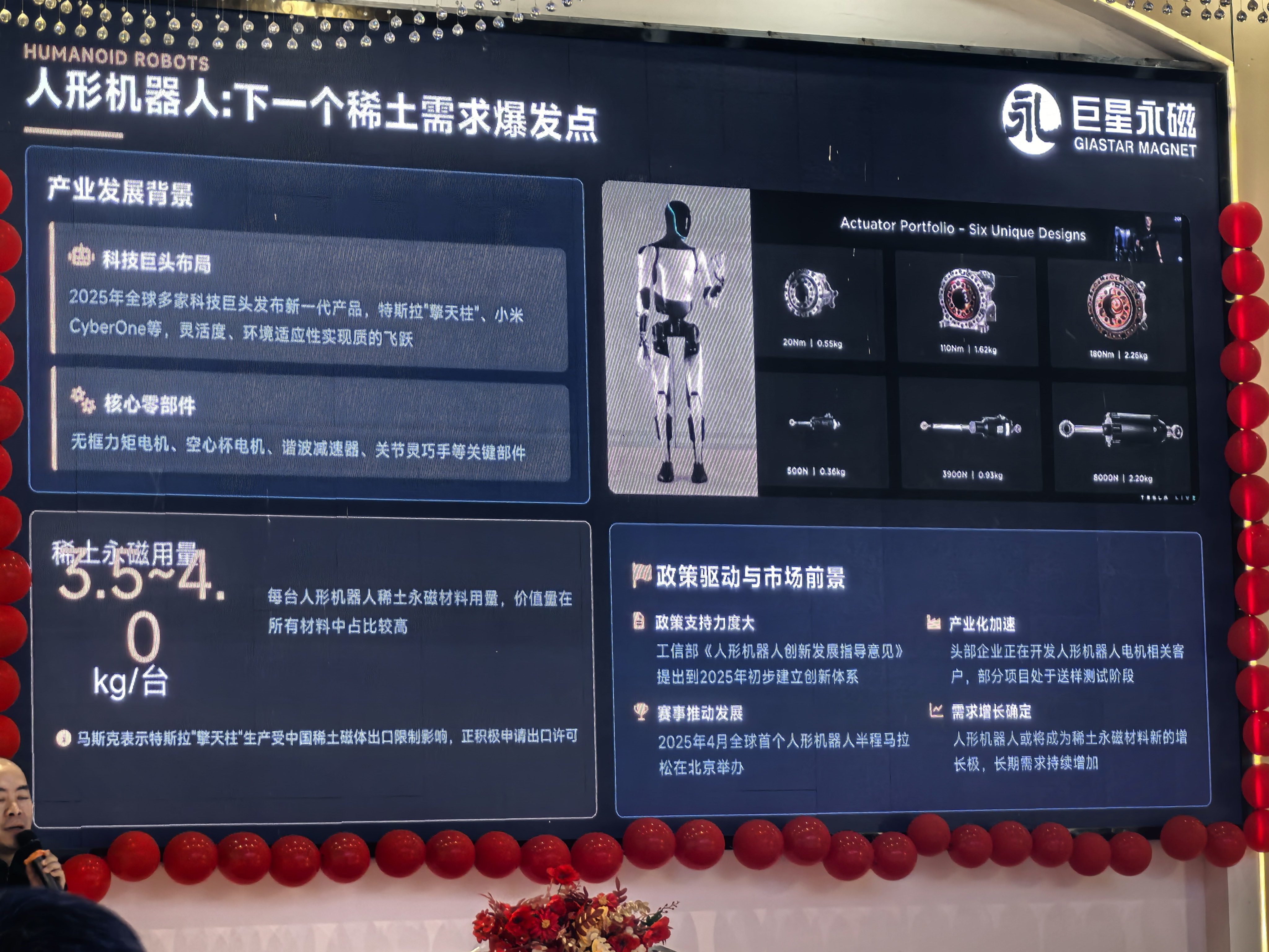 一個(gè)關(guān)鍵信號(hào)是:下游應(yīng)用正在深刻拉動(dòng)磁材產(chǎn)業(yè)升級(jí)。四川天鏈機(jī)器人運(yùn)營(yíng)總監(jiān)顏進(jìn)指出,單個(gè)人形機(jī)器人就有71個(gè)關(guān)節(jié),對(duì)磁性材料的需求量巨大。富臨精工等企業(yè)已將具身機(jī)器人引入生產(chǎn)線。