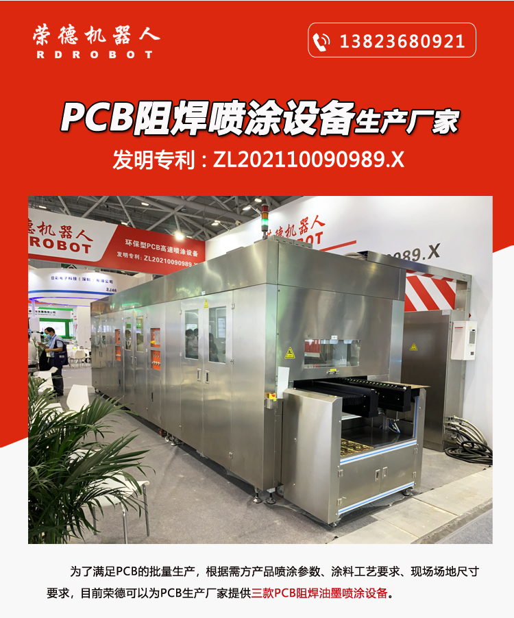 榮德機(jī)器人是國(guó)內(nèi)線(xiàn)路板噴涂生產(chǎn)設(shè)備的領(lǐng)軍企業(yè),在PCB涂覆行業(yè)擁有23年的技術(shù)積淀,產(chǎn)品和技術(shù)研發(fā)一直在不斷突破,從一代水平低壓阻焊噴涂機(jī)到現(xiàn)在的三代阻焊油墨高速機(jī)器人噴涂線(xiàn),產(chǎn)品不斷升級(jí)以滿(mǎn)足客戶(hù)對(duì)高端產(chǎn)品的需求。